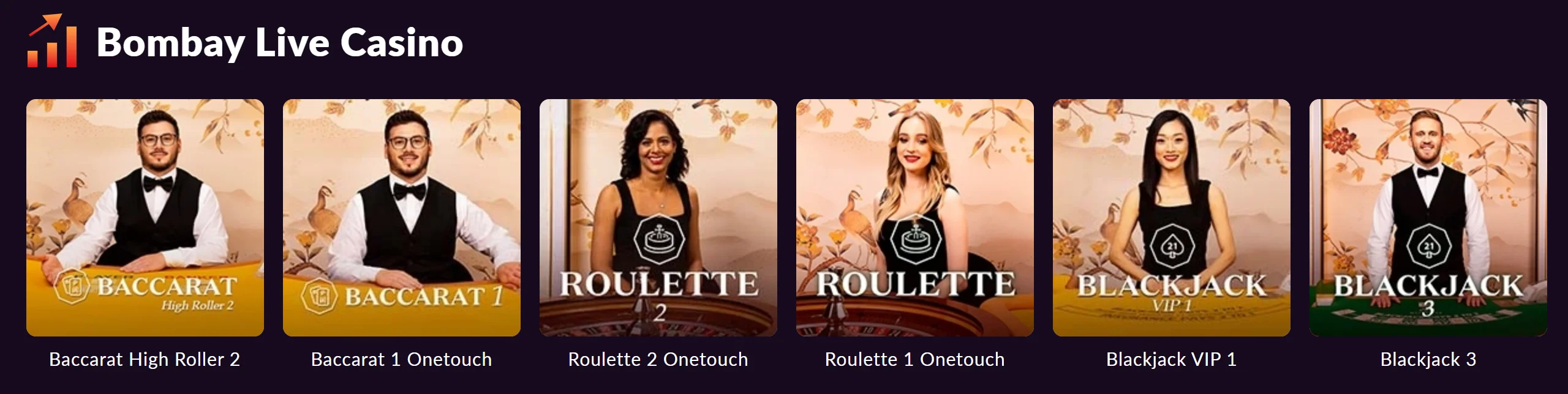 W sekcji na żywo dominują transmisje od czołowych dostawców, takich jak Evolution, Ezugi i Bombay Live. Gracze mają do dyspozycji kilkadziesiąt stołów z realnymi krupierami, przy których można grać w ruletkę (np. Auto-Roulette, American Roulette), blackjacka (w różnych wariantach stawek), bakarata (np. Baccarat Squeeze, Prosperity Tree Baccarat), pokera (np. Video Poker, Teen Patti) oraz teleturnieje (np. Crazy Time, Gold Vault Roulette).